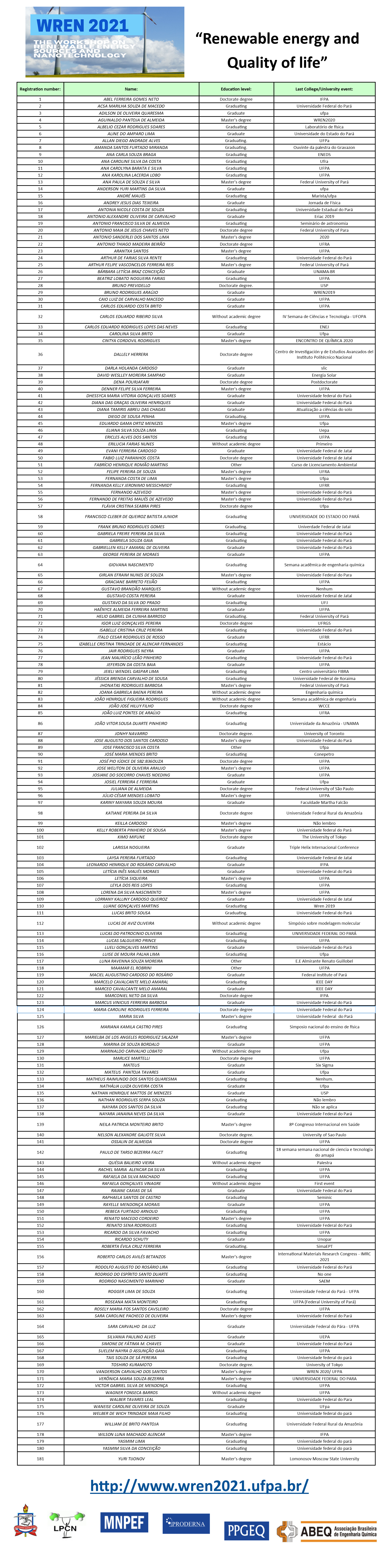 The list of confirmed registrations will be available for download at the link below, check your registration request, in case of problem, contact the event organizers by email.